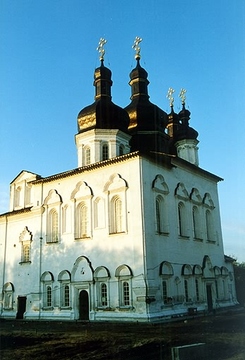 Знаменский собор в Тюмени со всех сторон окружают здания современного города, и бело-зеленая громада собора открывается неожиданно, из-за угла, мелькнув в просвете между домов...